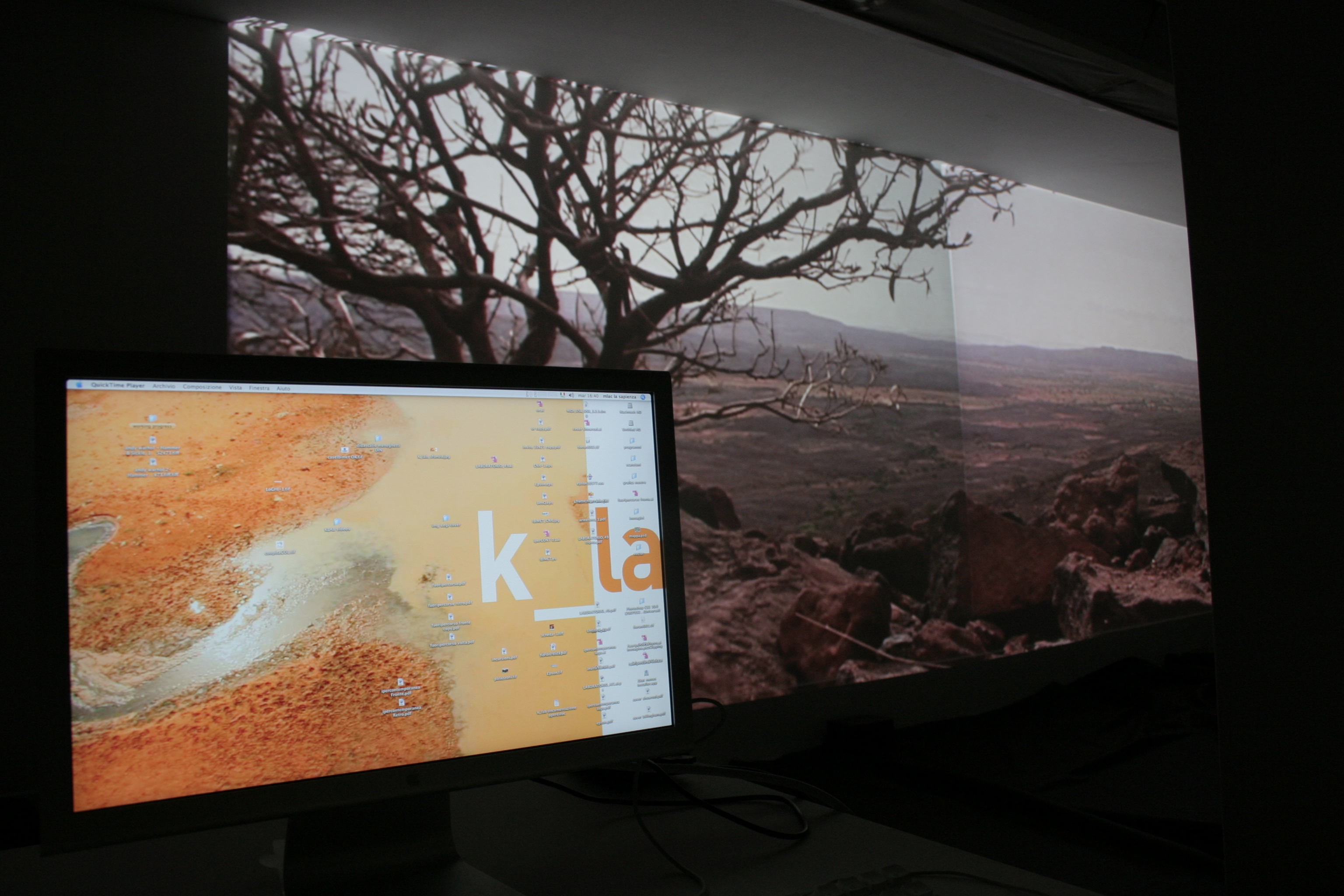 La mostra al MLAC (Università La Sapienza – Roma) è stata la prima e importante verifica di un lavoro che si è sviluppato e trasformato diventando itinerante in altre sedi. L’evento è stato parte del ciclo espositivo IPERCONTEMPORANEA del MLAC diretto da Simonetta Lux e curato da Domenico Scudero, con il contributo della Regione Lazio “Applicazione nuove tecnologie multimediali arte contemporanea”. La mostra è stata sponsorizzata da Epson. Partner tecnologico: BenQ.