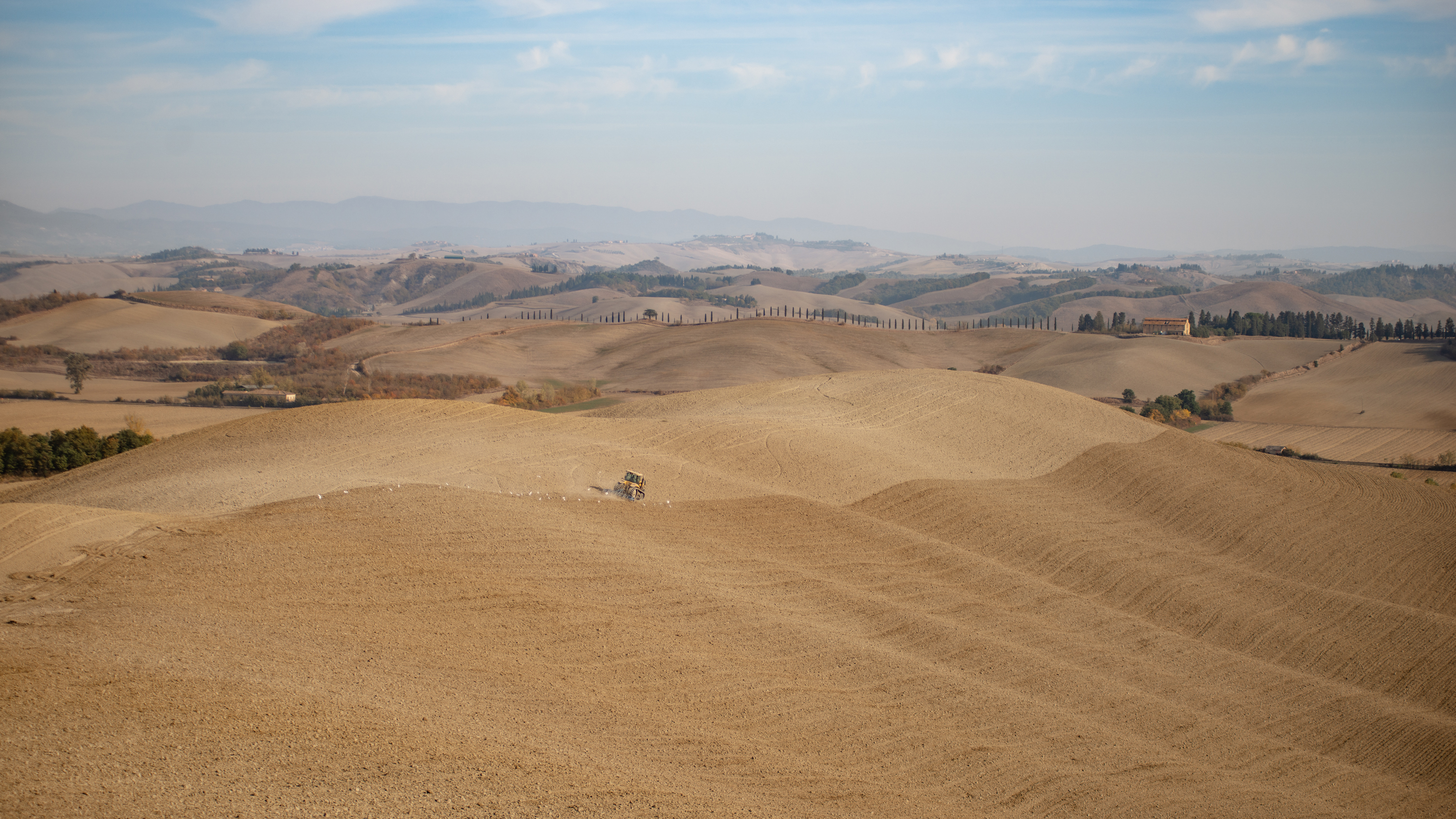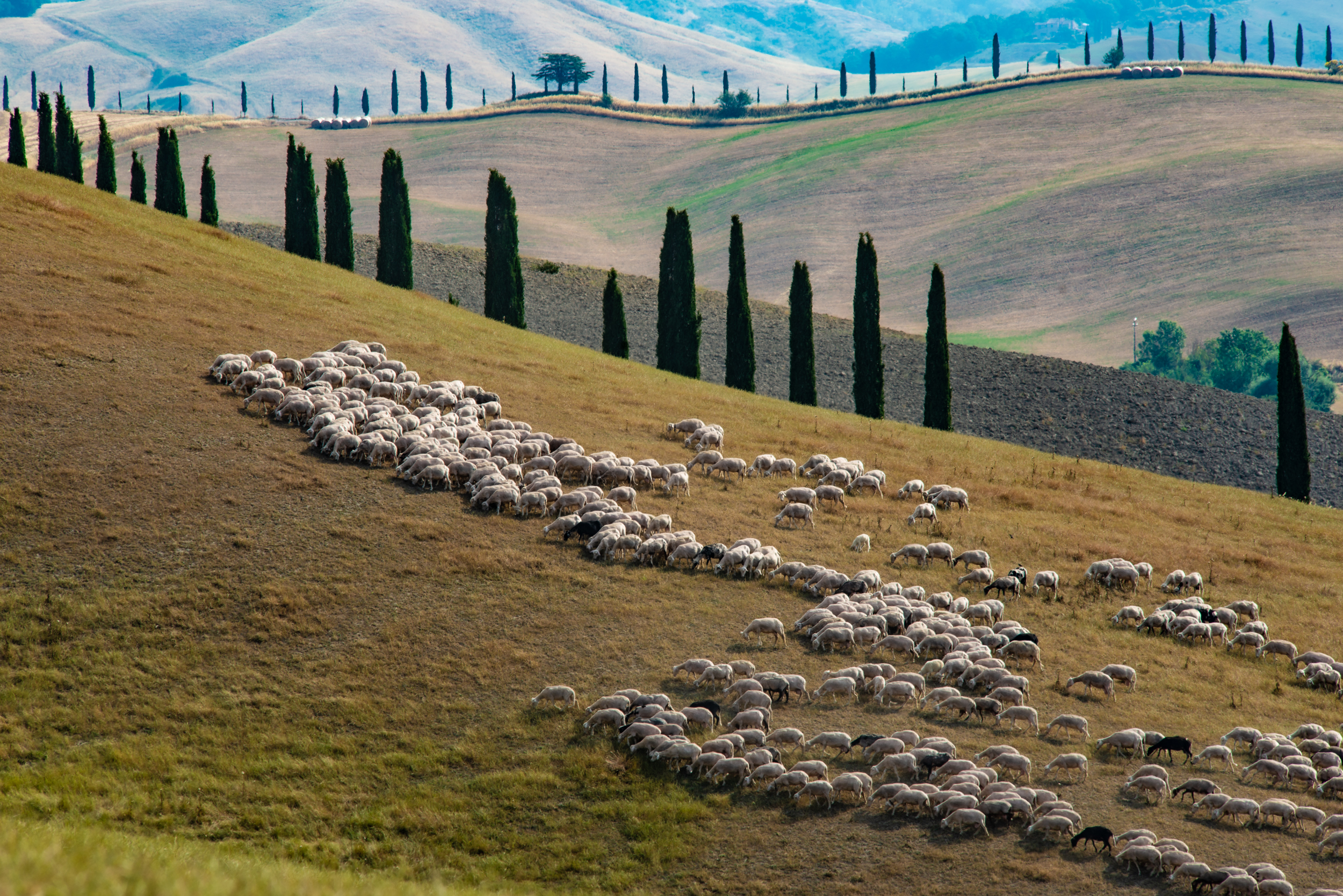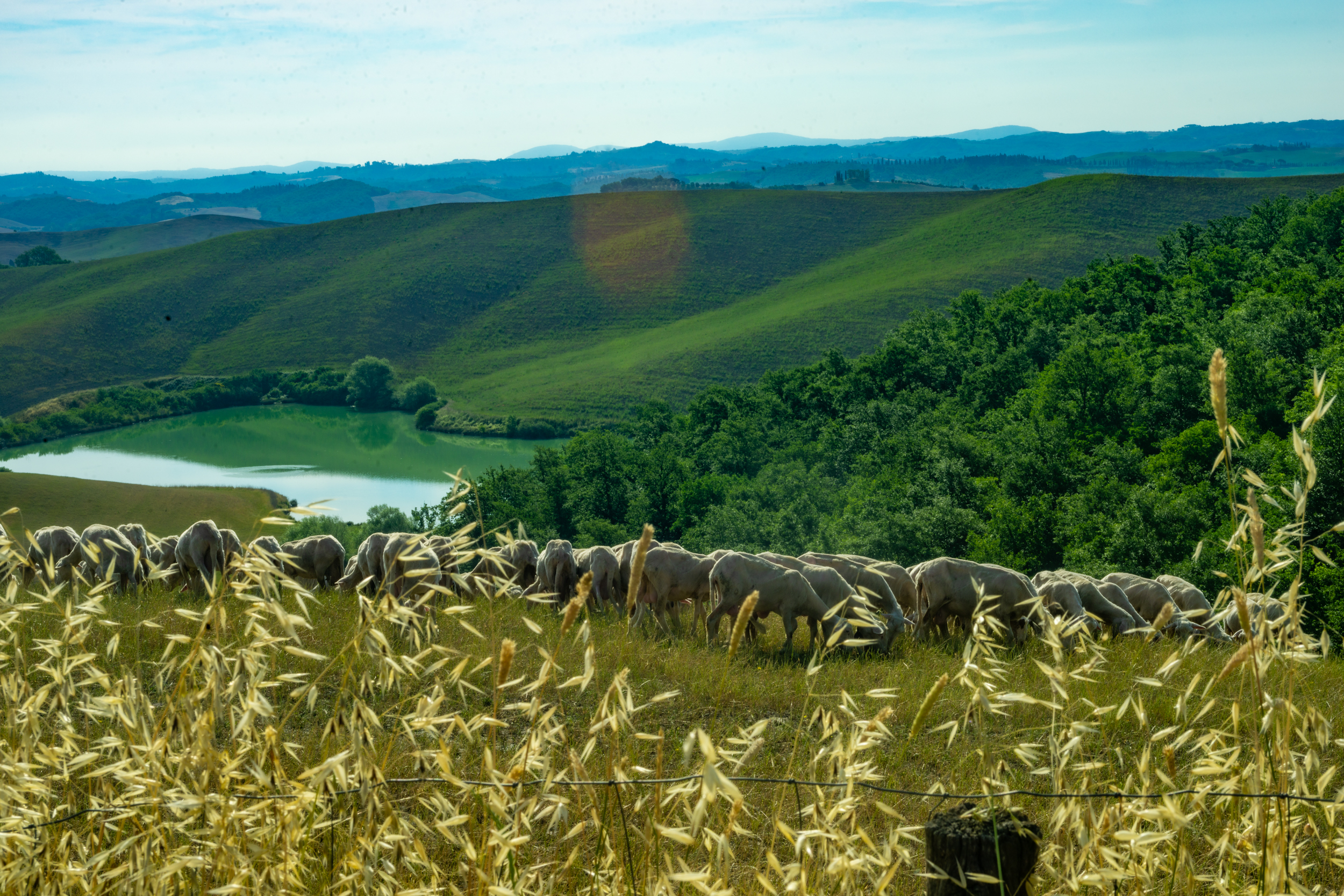Suvignano, passeggiare senza fretta per stradine e sterrati, inerpicarsi, scendere da colline ora verdi e ora dorate, assaporare i profumi della terra. Sedersi e ammirare un paesaggio antico, di colline brulle e stradine, di filari di vite, di cipressi e chiesette solitarie, forgiato dall’uomo per incutere meraviglia agli occhi del viaggiatore. Suvignano, una tenuta di poco meno di 700 ettari, quasi interamente coltivata, in cui un gregge pascola tranquillo punteggiando di bianco il verde eccessivo dei prati.