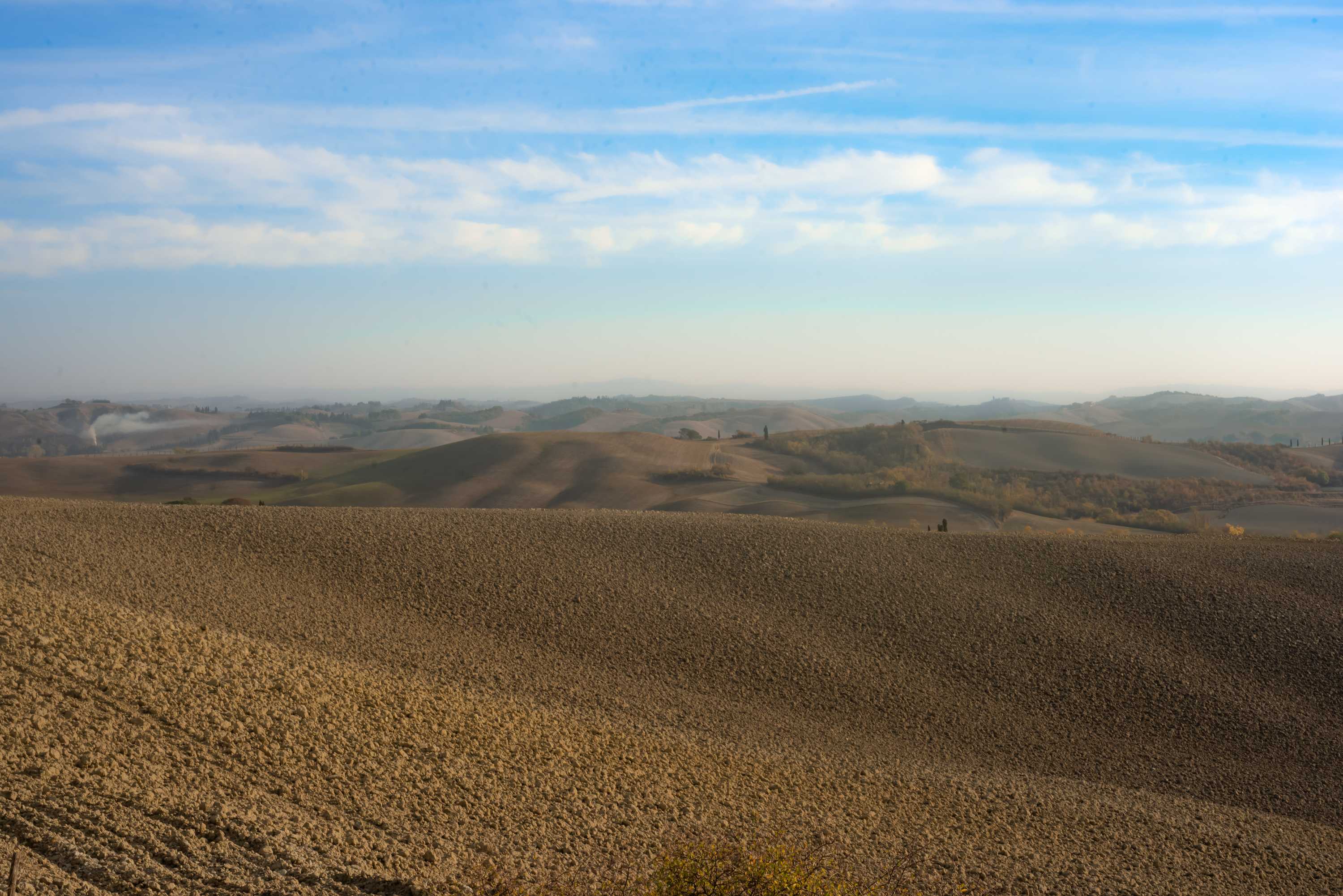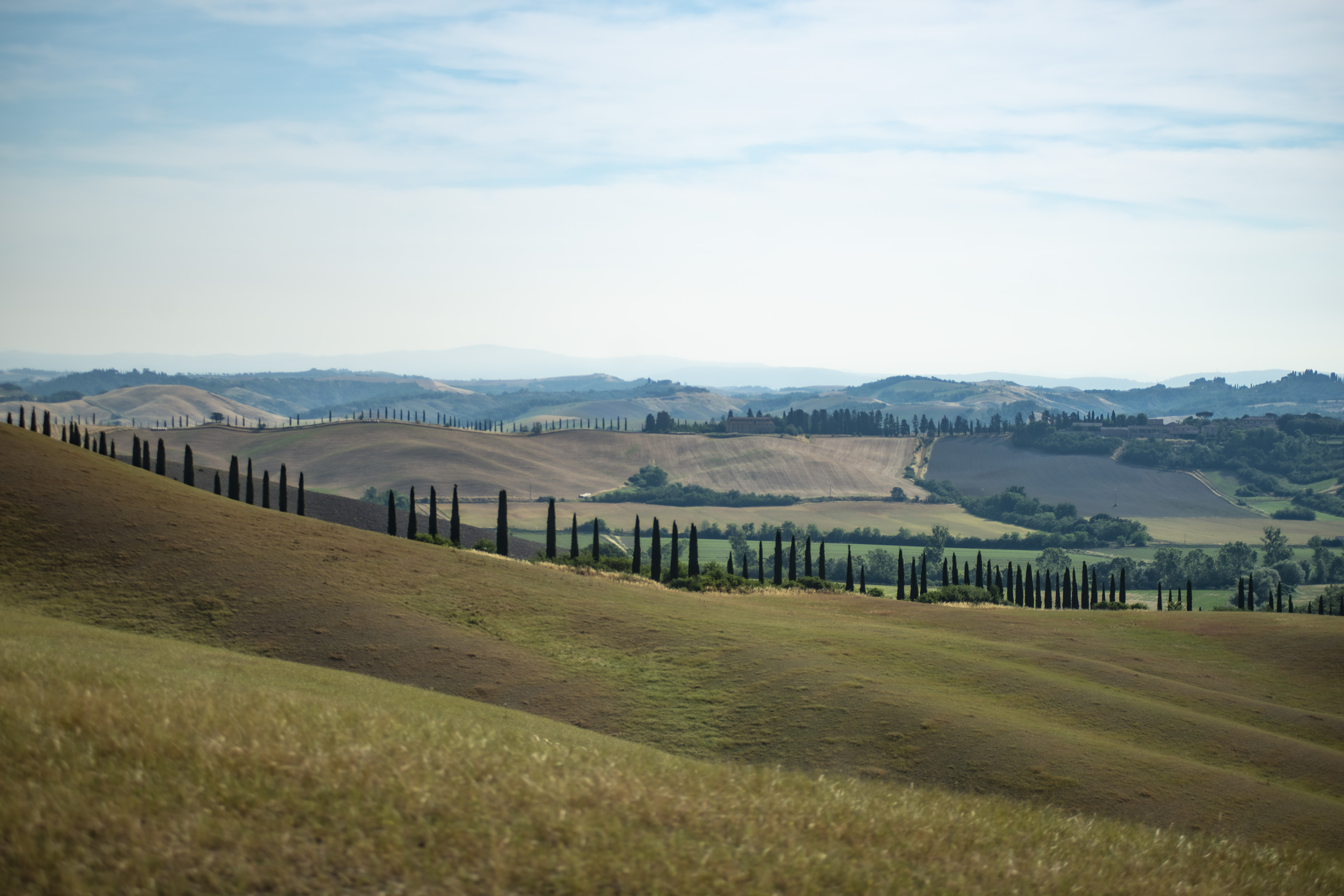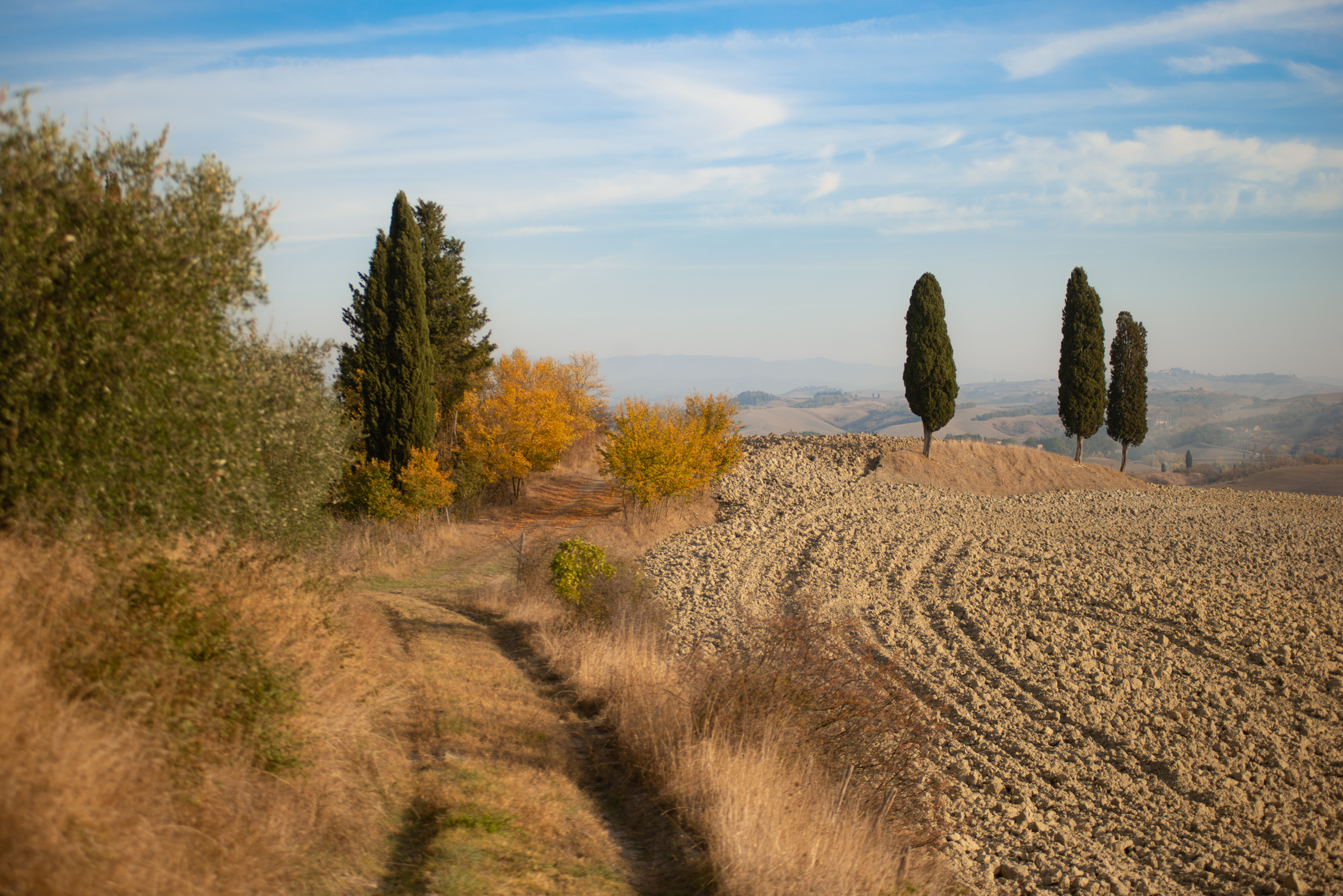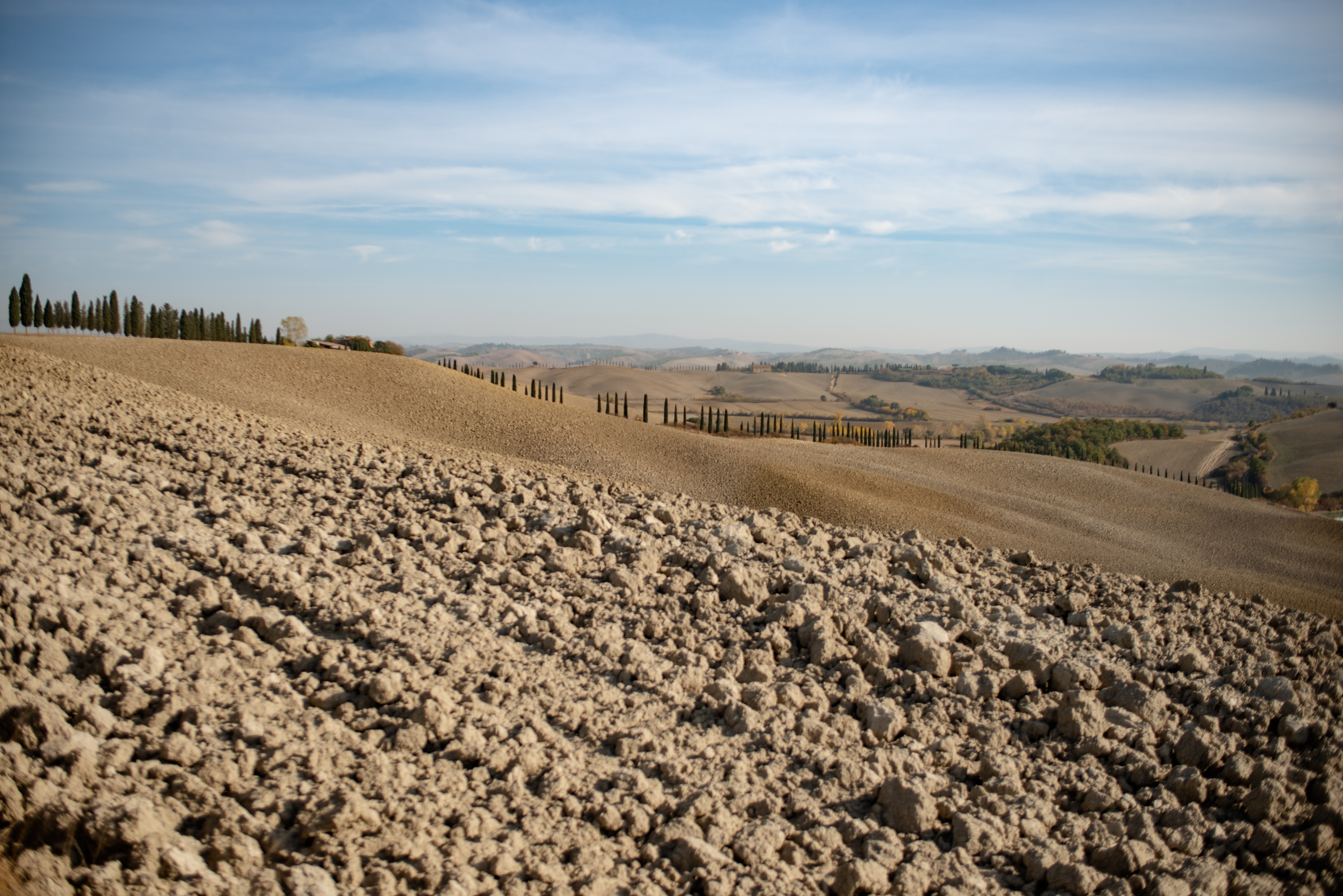 Suvignano, passeggiare senza fretta per stradine e sterrati, inerpicarsi, scendere da colline ora verdi e ora dorate, assaporare i profumi della terra. Sedersi e ammirare un paesaggio antico, di colline brulle e stradine, di filari di vite, di cipressi e chiesette solitarie, forgiato dall’uomo per incutere meraviglia agli occhi del viaggiatore. Suvignano, una tenuta di poco meno di 700 ettari, quasi interamente coltivata, in cui un gregge pascola tranquillo punteggiando di bianco il verde eccessivo dei prati.